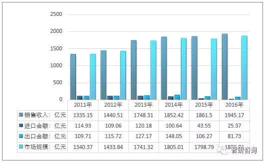 根據測算,2016年我國空氣壓縮機行業銷售收入為1945.17億元,進口總額為25.37億元,出口總額為81.73億元,行業市場規模為1888.81億元。