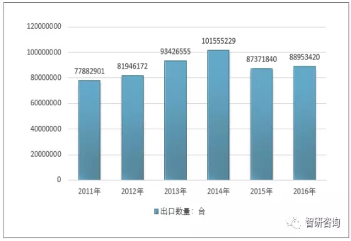 2011-2016年我國空氣壓縮機出口數量走勢圖(單位:臺)