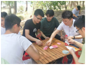 在自由活動(dòng)中,玩撲克牌的,林中散步的,聊天團(tuán)的員工們各成一派,閑散自在。即使是炎熱的夏天,也有綠樹成蔭,夏風(fēng)徐徐,流水淙淙,為我們的團(tuán)建活動(dòng)帶來(lái)清涼和享受。