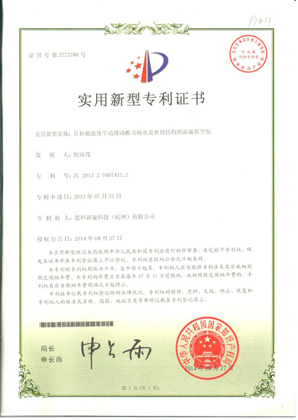 實(shí)用新型具有磁流體平動(dòng)滑動(dòng)推力軸承及密封結(jié)構(gòu)的渦旋真空泵 >