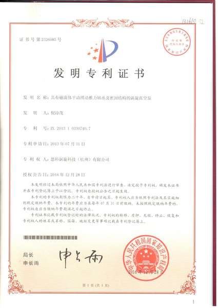 實(shí)用新型具有磁流體平動(dòng)滑動(dòng)推力軸承及密封結(jié)構(gòu)的渦旋真空泵 >
