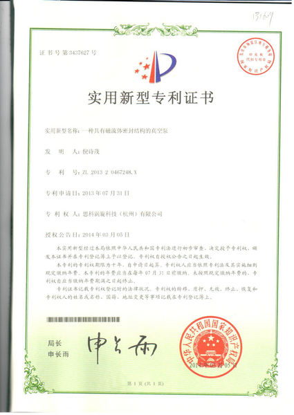 實(shí)用新型X一種具有磁流體密封結(jié)構(gòu)的真空泵 >